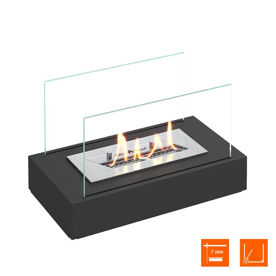 Как и габаритные аналоги, низкие модели состоят из металлического корпуса, топливного блока, закаленного стекла, иногда — декоративных элементов. Горючим является экологически чистое топливо на основе виноградного спирта — биоэтанол. При сгорании он не образует дыма, копоти, сажи, не выделяет вредных для здоровья веществ. Монтировать вентиляционную или дымоходную систему не потребуется. Получать разрешения на установку тоже не нужно.